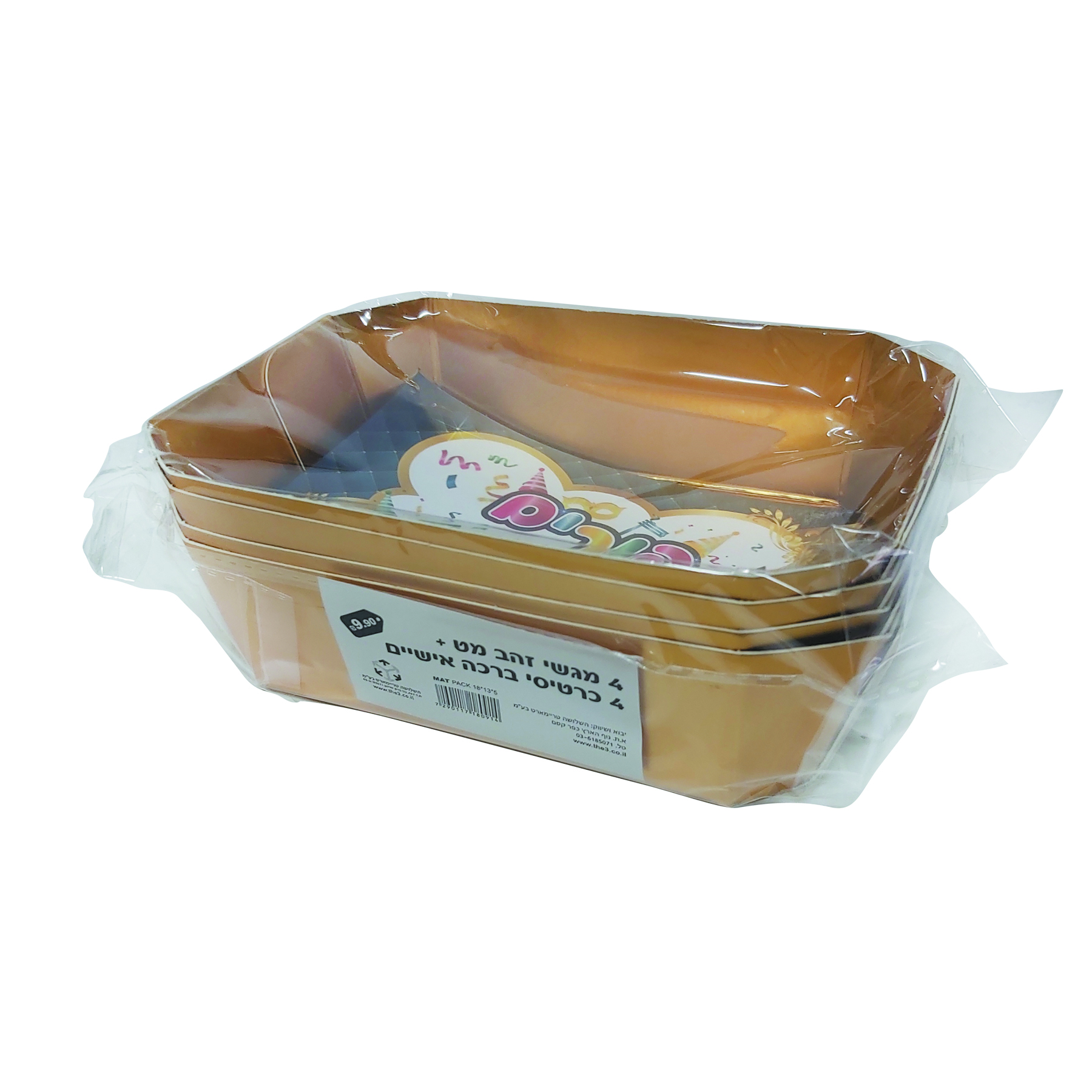 מארז 4 קרטוניות זהב מט עם 4 כרטיסי ברכה 18*13*5