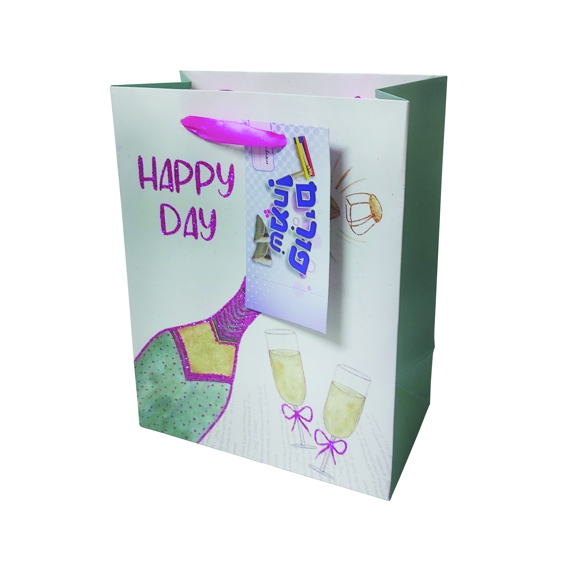שקית נייר בינונית – בקבוק יין – טורקיז