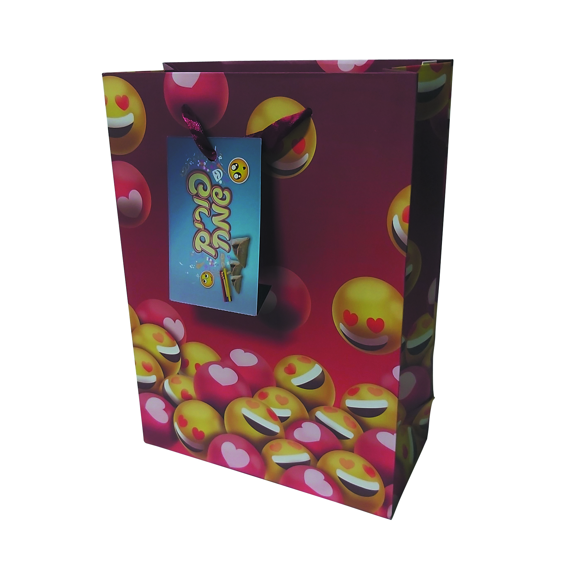 / שקית נייר בינונית עם פרצופים – אדום